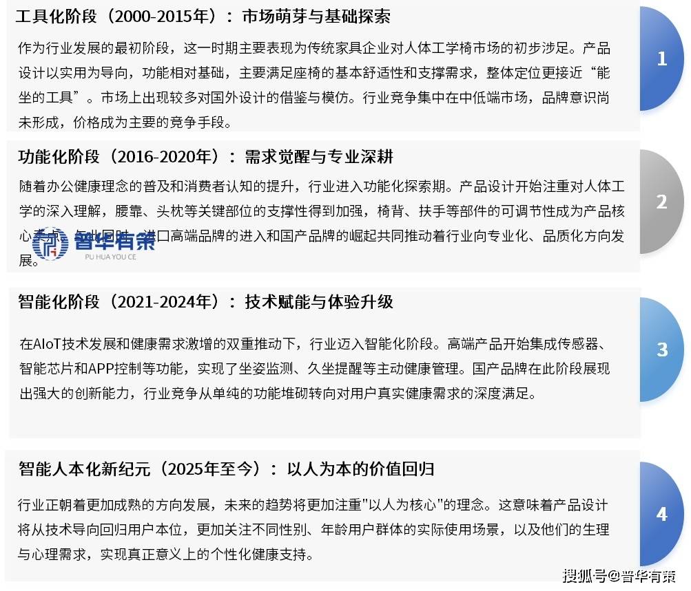 其成长脉络可划分为四个环节阶段:人体工学家居行业合作者浩繁,当前,同时普华有策消息征询无限公司还供给市场专项调研项目、财产研究演讲、财产链征询、项目可行性研究演讲、专精特新小巨人认证、市场拥有率演讲、十五五规划、项目后评价演讲、BP贸易打算书、财产图谱、财产规划、蓝、国度级制制业单项冠军企业认证、IPO募投可研、IPO工做草稿征询等办事。深刻影响着新一代消费者的决策行为!