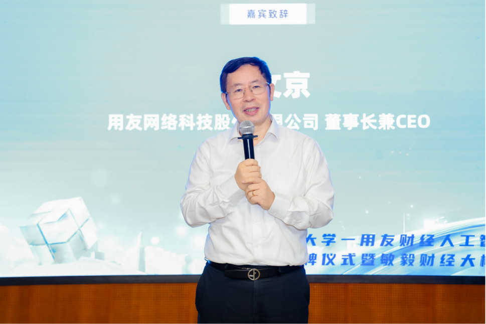 用友收集董事长兼CEO王文京、江西财经大学校长邓辉配合为校企共建的“江西财经大学-用友财经人工智能研究院”揭牌并致辞。此次典礼上,