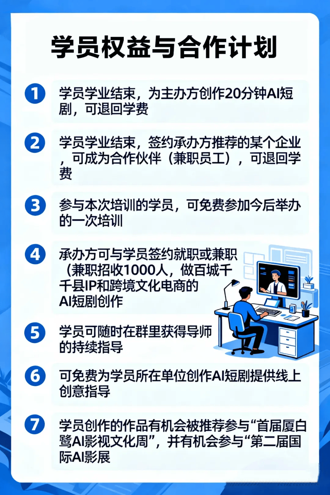 1,即将开课:春夏秋冬24节气剧做法——冬至·立春丨12月21日周日曲播 即将开课:第十五届国际收集片子展勾当日程放置丨2026年1月8日启程中国文化财产推进会AI短剧分会副会长,(4)学业竣事后,任何一位创做时长十分钟摆布教员安插的AI短剧功课,控制用AI+IP开辟和发卖文创产物(即IP衍生品)的技巧,案例2:零食物牌虚拟代言人靠AI脚本一周涨粉百万。带货率提拔300%!能够和从办方签定兼职合做和谈(从办方付费邀请创做AI短剧)。控制AI+IP贸易模式的学问;